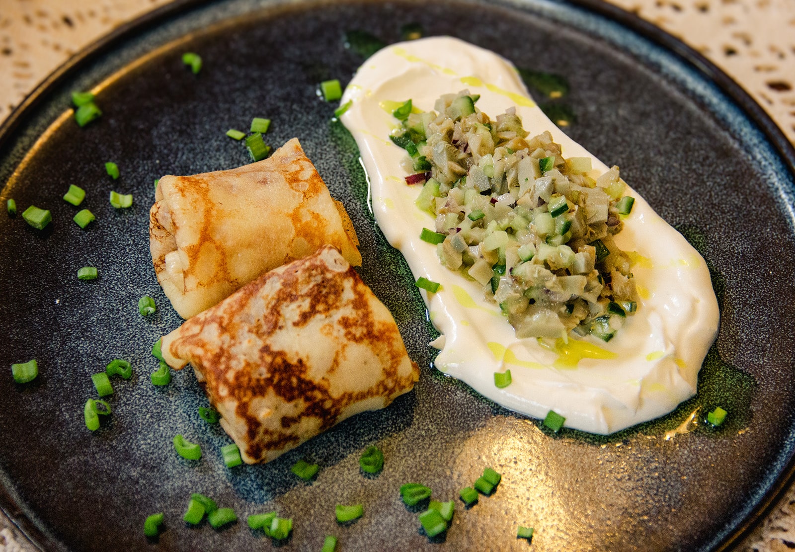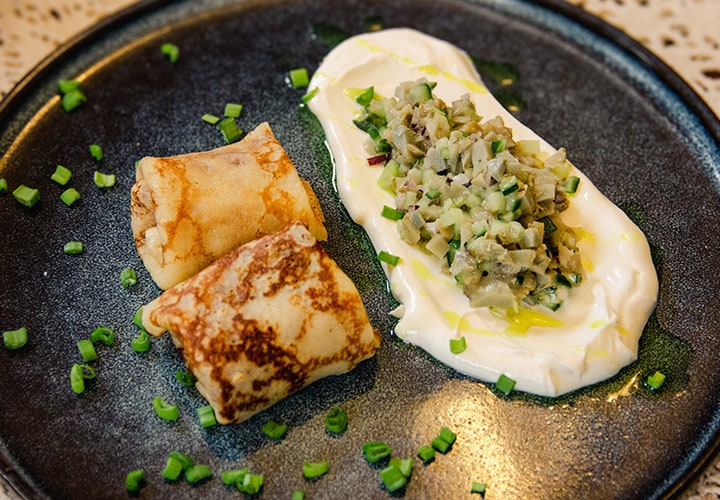 После шумных гуляний в Музее деревянного зодчества приглашаем вас продолжить масленичное торжество в историческом ресторане Суздаля. Здесь, в уютном зале, шеф-повар предлагает по-новому взглянуть на главное блюдо праздника. В нашем меню — не только традиционные, всеми любимые блины, но и изысканные авторские интерпретации, где русские кулинарные традиции встречаются с европейским шиком и смелыми вкусовыми сочетаниями.